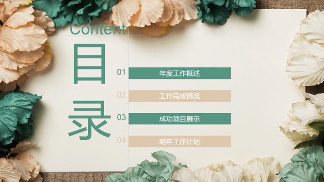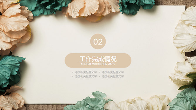 唯美花朵文艺范报告PPT模板。一套工作总结报告汇报幻灯片模板,唯美花朵桌面背景,清新淡雅文艺范。