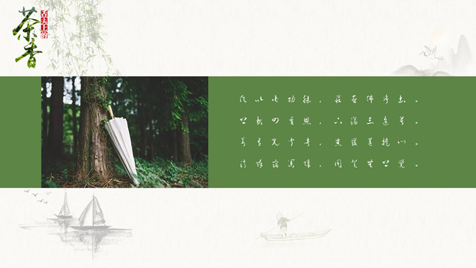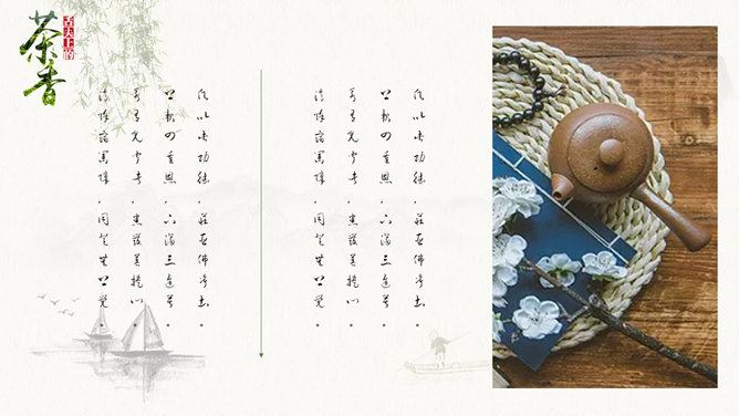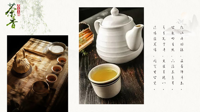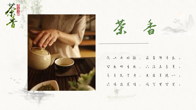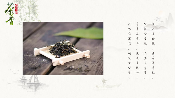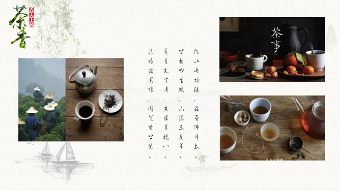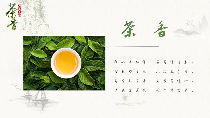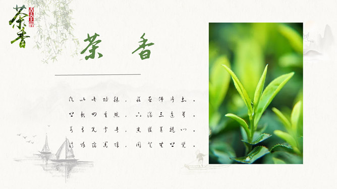茶叶茶香图文中国风PPT模板。一套茶叶茶艺主题幻灯片模板,中国风图文排版,建议安装字体: