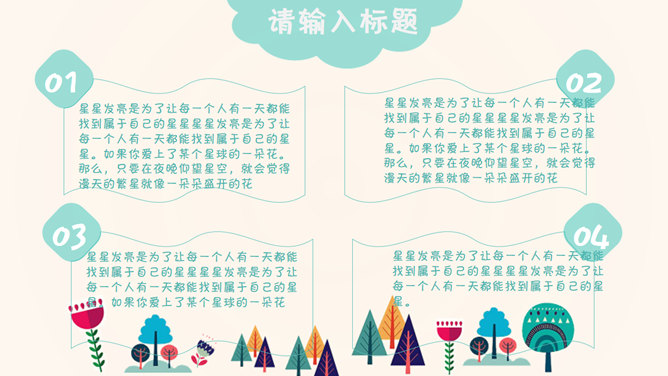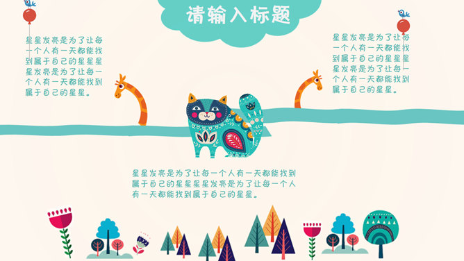 插画风可爱卡通PPT模板。一套小清新可爱卡通风格幻灯片模板,扁平化插画风设计,注意安装字体: