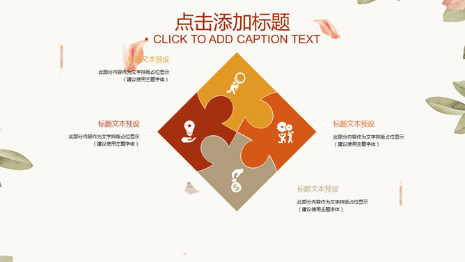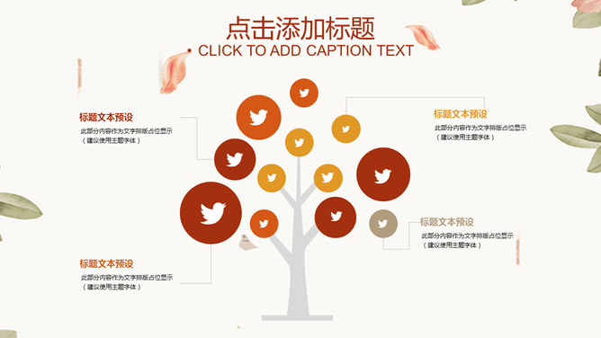 淡雅清新花朵叶子PPT模板
