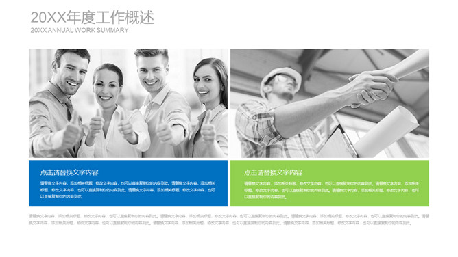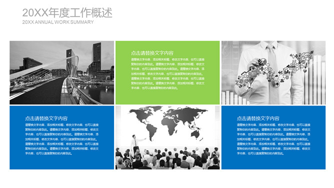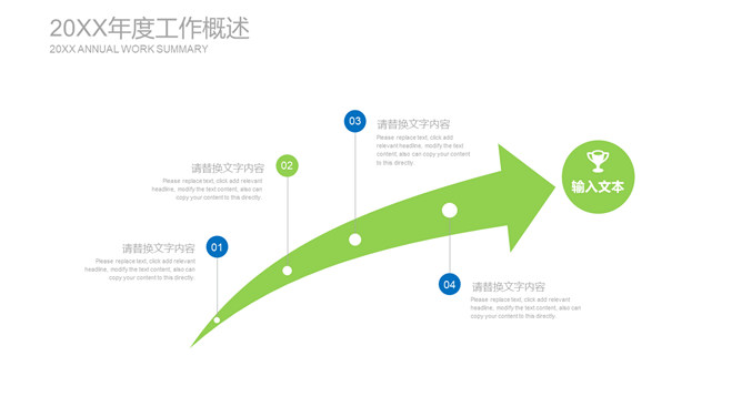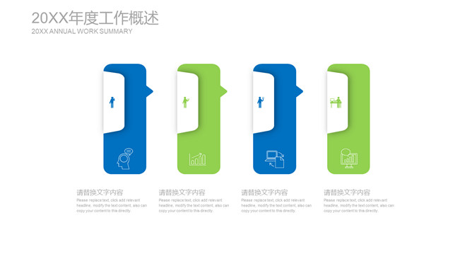 清爽蓝绿年终述职报告PPT模板。一套年终工作总结述职报告幻灯片模板,清爽蓝绿配色,简约排版布局。