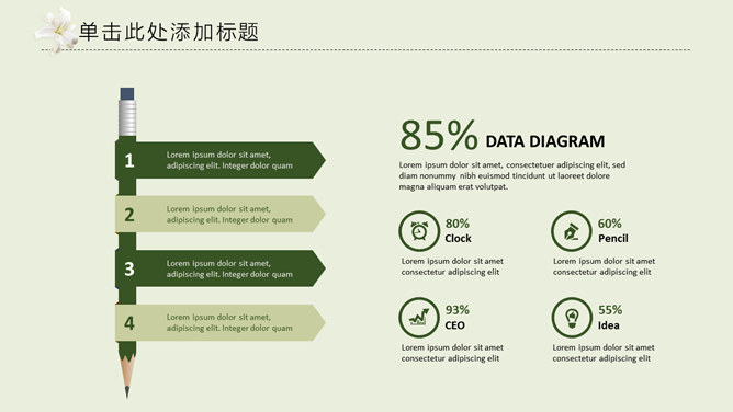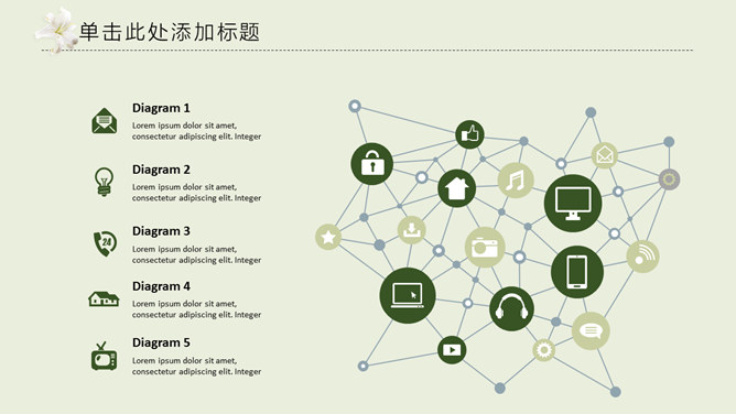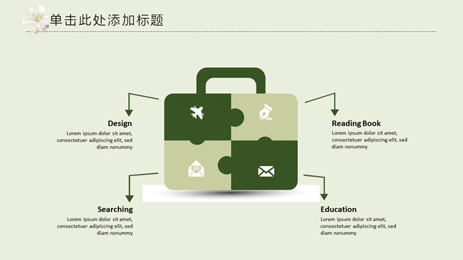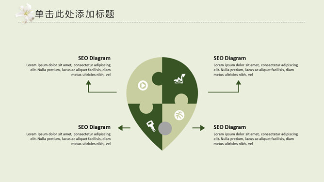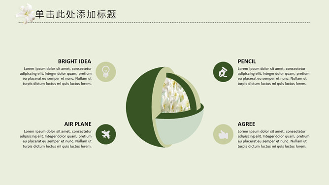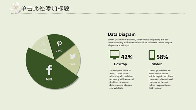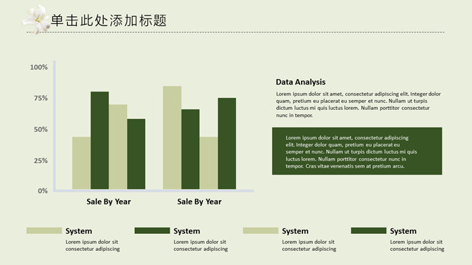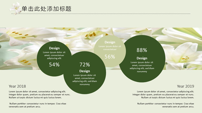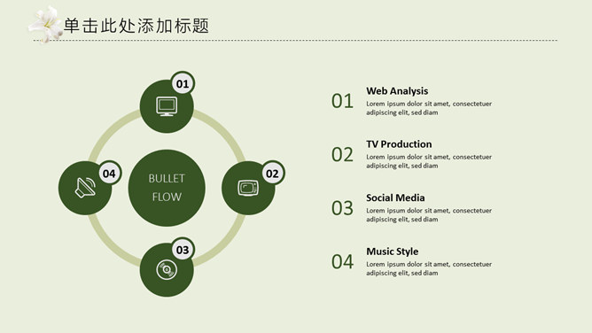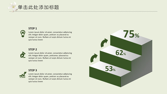 淡雅唯美工作总结汇报PPT模板。一套工作总结报告幻灯片模板,淡雅唯美花朵背景,清新绿色主色调。