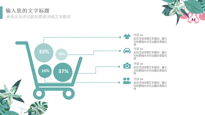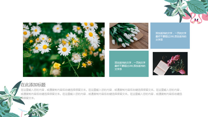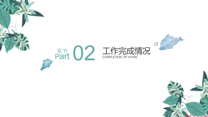 文艺清新工作汇报PPT模板。一套年终工作汇报总结幻灯片模板,淡雅文艺小清新设计风格,水彩叶子花朵装饰。