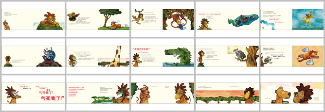 《不会写字的狮子》绘本故事PPT。狮子不会写字,可是他可不在乎。他能露出尖利的牙齿,还会大声吼叫,有着这些能力就足够了。一天,他看到了一只母狮子,美丽的母狮子正在看书,狮子走上前去想亲吻她,却停下了脚步。他想:看书的母狮子是淑女,对待淑女,我们应该先写信给她,才能亲吻她。这是一名传教士说的,而传教士已经被狮子吞到肚子里了。可是狮子不会写字。于是狮子去找猴子