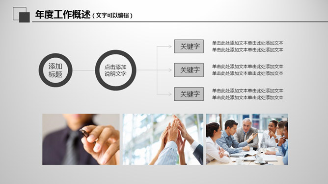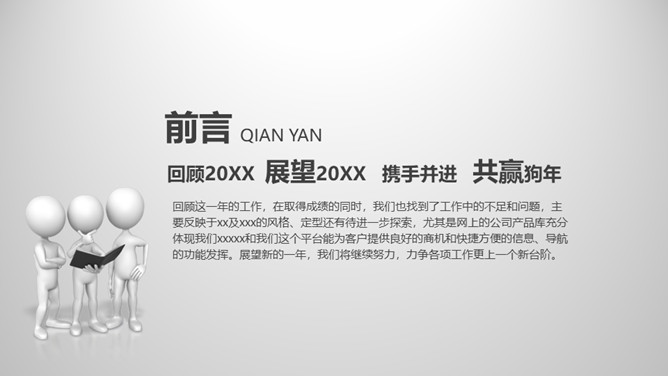 大气灰色年终报告PPT模板。一套年终工作总结汇报幻灯片模板,大气稳重灰色色调,页面丰富实用,动态播放。