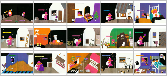 《窗外送来的礼物》绘本故事PPT。今天是圣诞节,那一大包一定是礼物。这里是小老鼠的家,礼物是一双很棒的长筒靴。这是小猫咪的家,送给她可爱的蝴蝶结。这儿住的是斑马,送给她一条黑白条纹的围巾。这里怎么没人住,所为就不送礼物了。这里住的是狐狸吧,送给他一顶尖头的帽子。这里住的是鳄鱼吧,有点怕怕的,赶快把毛衣放进去。这里住的一顶是一对双胞胎兄弟,那就送他们两件礼物