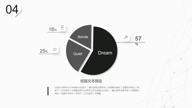 时尚线条工作汇报PPT模板。一套创意简约幻灯片模板,时尚裂缝效果线条装饰,大气素雅黑灰配色,通用性强。