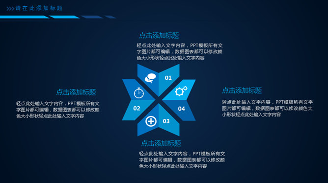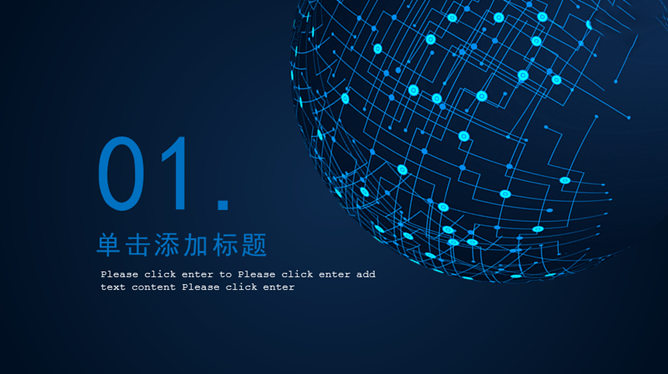 互联网大数据电子商务PPT模板。一套蓝色荧光效果科技风幻灯片模板,适合大数据、电子商务等互联网行业使用。