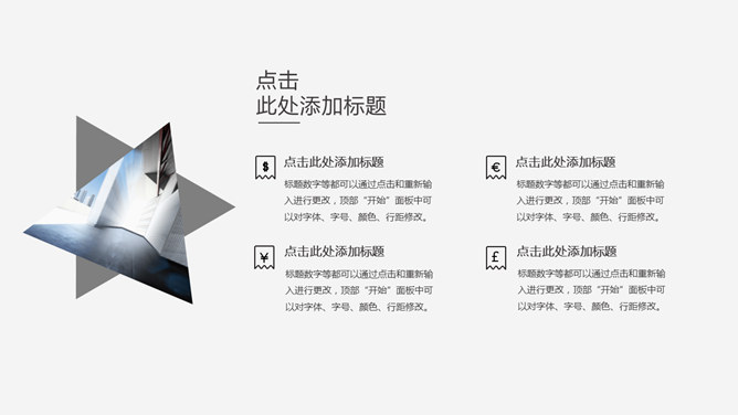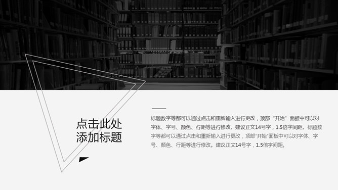 简约素雅创意三角风PPT模板。一套简约通用幻灯片模板,素雅黑白配色,创意三角风设计风格,好看的动态效果。