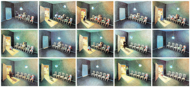 《第五个》绘本故事PPT。五个残缺不全的玩具在一间昏暗的房间里等待着,然后一个接一个地消失在门后,又焕然一新地走出来。排在第五个的小木偶越来越害怕,门后面是什么呢?小木偶推开门,门后面原来是个亲切的医生,一点也不可怕。本书意在给孩子无畏的勇气,克服黑暗和恐惧