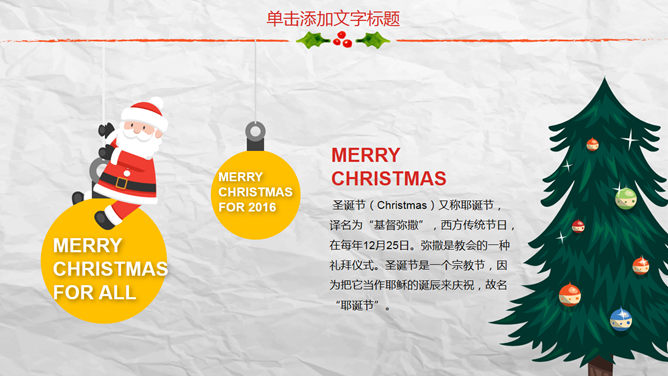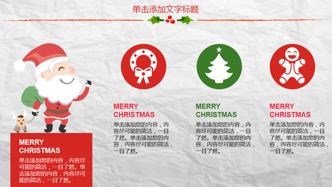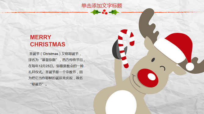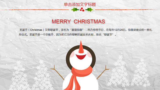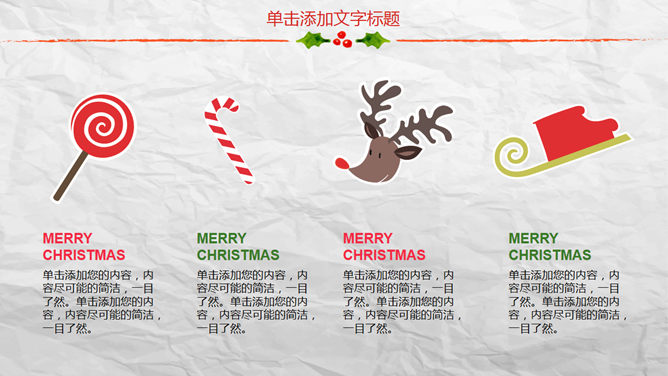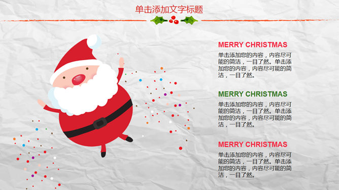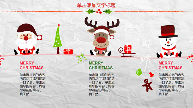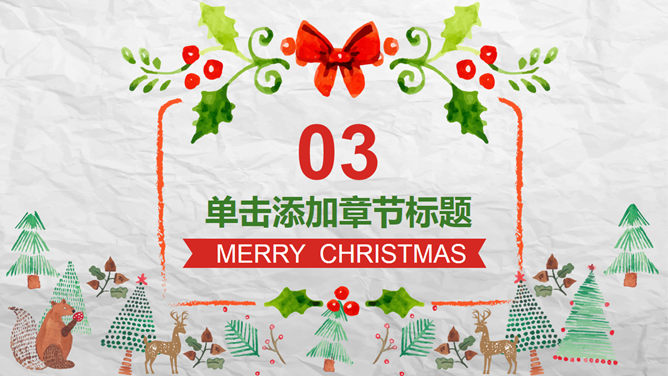 可爱水彩剪贴画圣诞节PPT模板。一套精美的圣诞节主题幻灯片模板,水彩剪贴画设计风格,动态播放效果。