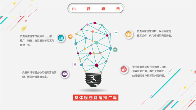 缤纷彩色工作汇报PPT模板。一套工作总结汇报报告幻灯片模板,清新缤纷彩色配色,简约通用,动态播放。