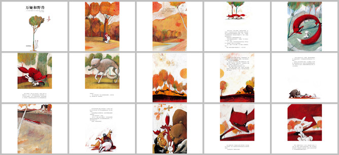 《万娅和野兽》绘本故事PPT。今天,小兔万娅自己出去玩。路上的一切都新鲜好玩,他不停的走,结果忘了回家的路,万娅迷路了。万娅心想:该怎么办,我最好去问问路。这时,一只动物沿着小溪走来。居然是一只狐狸,万娅打起哆嗦,因为爸爸妈妈总是提醒他要小心狐狸。你好,万娅硬着头皮和狐狸打招呼,因为即使他跑也来不及:请问,你知道我的家在哪吗?狐狸看着万娅