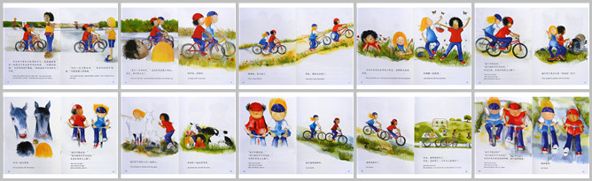 《骑车旅行记》绘本故事PPT。今天是个骑自行车的好天气,米莉邀请茉莉一起骑自行车去看爷爷奶奶。米莉的妈妈叮嘱说:不要迟到哦,奶奶会在十二点准时吃午饭。你们一定不要迟到,不要在路上闲逛。我们一定准时到,米莉和茉莉做了保证,说完她们就出发了。刚开始,很轻松。慢慢有点难了。后来都没办法骑了。米莉和茉莉趴在草地上休息,还跟瓢虫说悄悄话,和蝴蝶一起跳舞