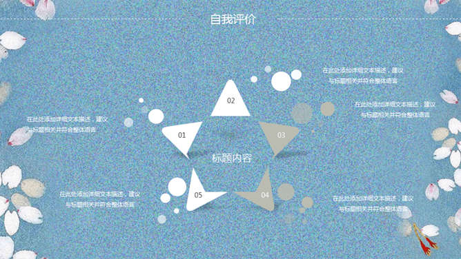 清新唯美花瓣通用PPT模板。一套唯美通用幻灯片模板,小清新缤纷花瓣图片背景,通用性强,框架结果完整。