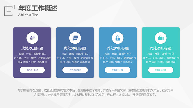 极简渐变工作总结汇报PPT模板。一套工作汇报总结报告幻灯片模板,极简设计风格,时尚青紫渐变配色。