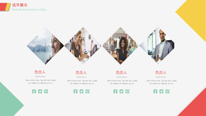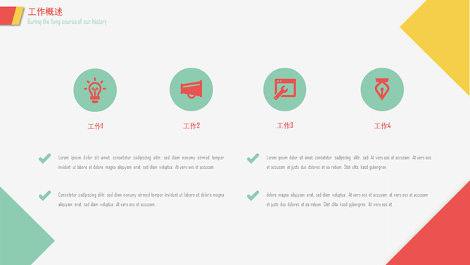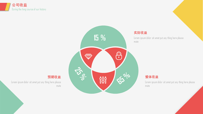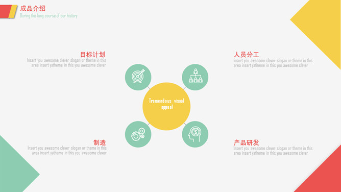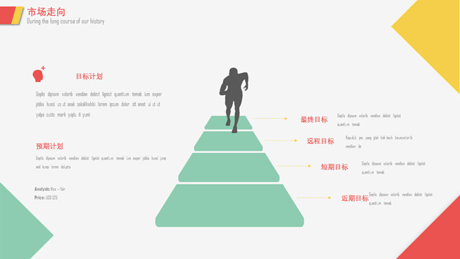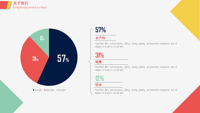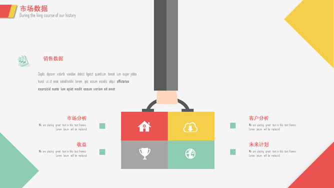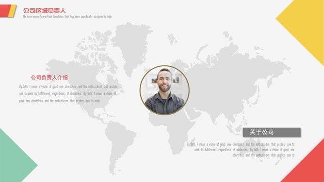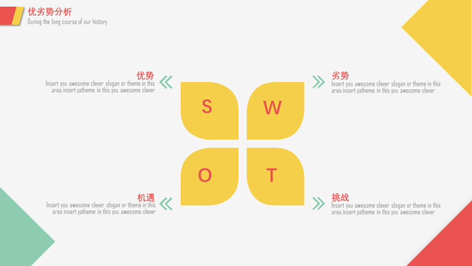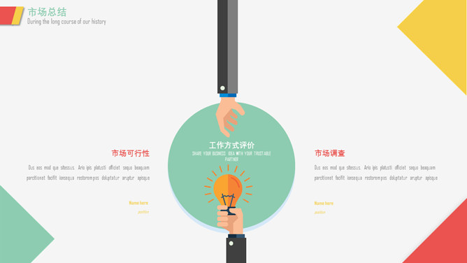 时尚简约彩色色块PPT模板。一套简约时尚幻灯片模板,黄绿红三色色块装饰,简约设计,通用性强。