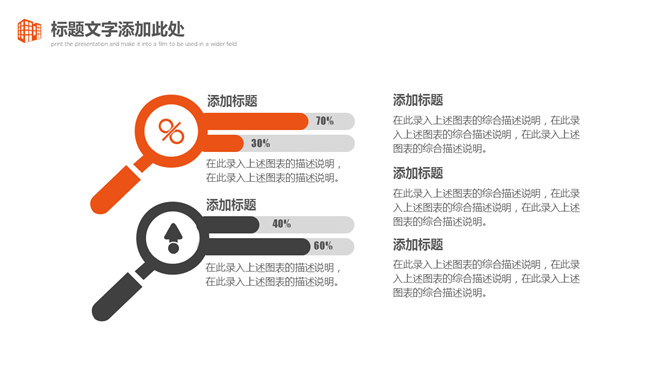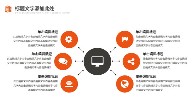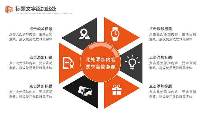 时尚大气商务汇报PPT模板。一套大气商务范幻灯片模板,橙黑配色,页面丰富实用,框架结构完整。