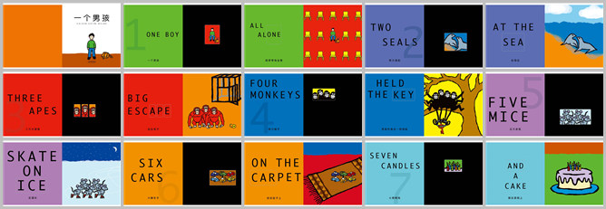 《一个男孩》绘本故事PPT。一个男孩,孤零零的坐着。两只海豹,在海边。三只大猩猩,逃出笼子。四只猴子,用尾巴卷住一把钥匙。五只老鼠,在溜冰。六辆车子,放在毯子上。七根蜡烛,插在蛋糕上。八把扫帚,收进储藏室里。九颗一排的种子,开出漂亮的花。十只蚂蚁,爬到他的裤子上。一个男孩,画了十张美丽的画