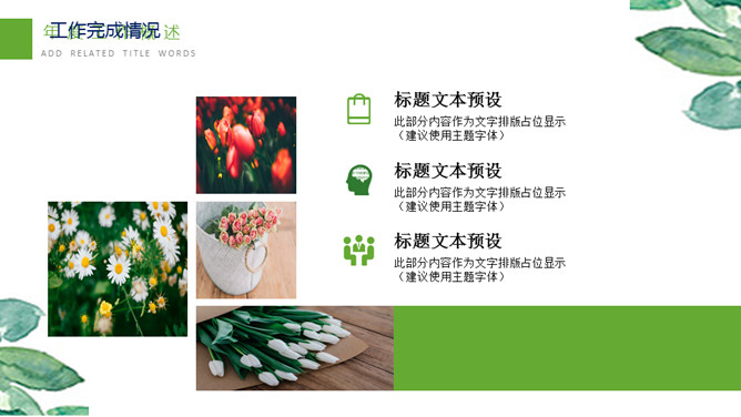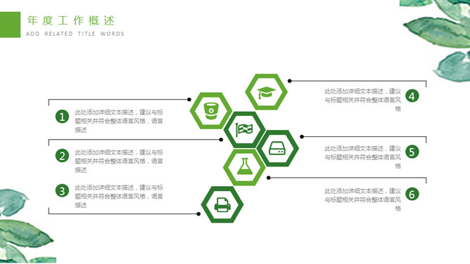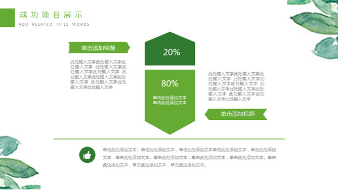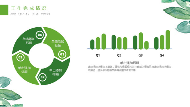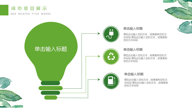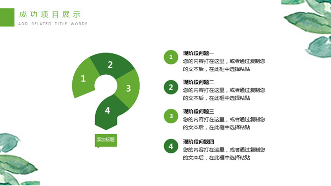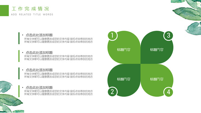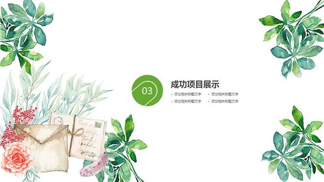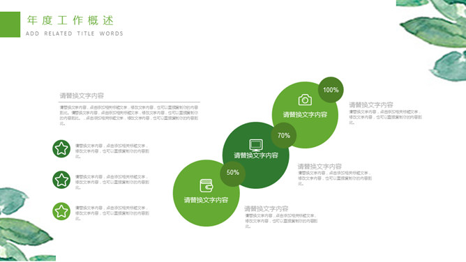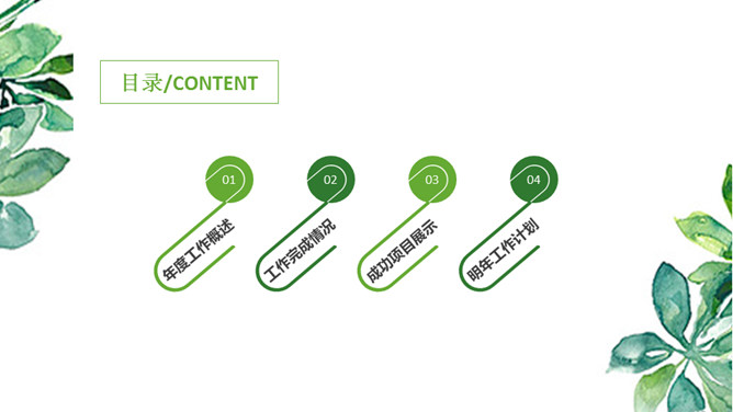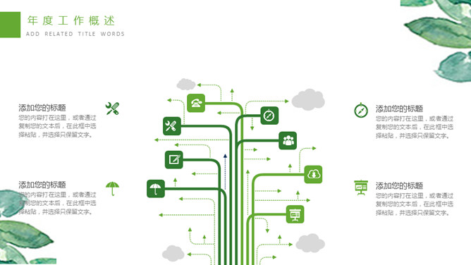 清新水彩绿叶通用PPT模板