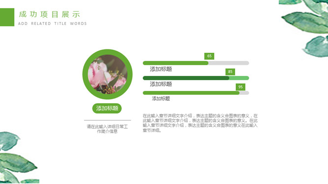 清新淡雅叶子绿植PPT模板