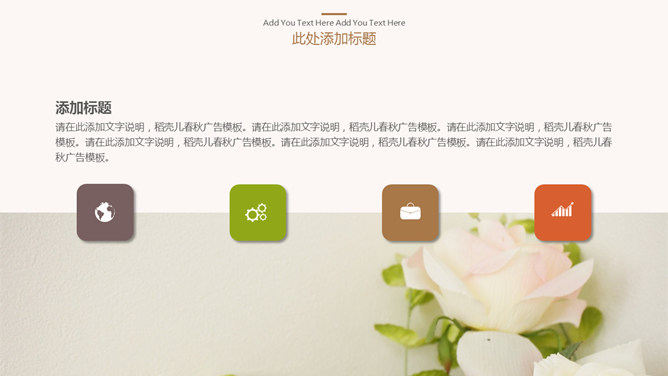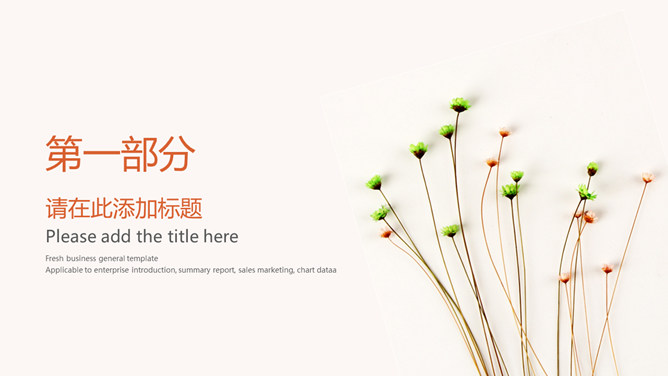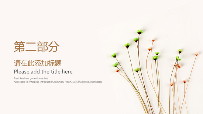 淡雅清新简约通用PPT模板。一套多功能通用幻灯片模板,花朵花草背景,淡雅清新配色,简约排版设计。