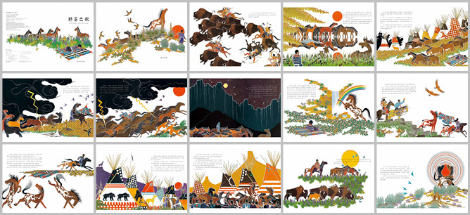 《野马之歌》绘本故事PPT。从前,印第安人总是随着野牛四处迁徙。他们用马屁来运送帐篷和各种东西,还训练速度最快的马捕猎野牛。村里有一位非常喜爱马的女孩。黎明时分,鸟儿们正在颂唱升起的太阳。女孩就起床了。她牵着马到小河边饮水,轻声对它们说话。马儿形影不离地跟随着她。人们发现女孩最理解马儿们。她知道它们最爱吃哪种草,也懂得帮马儿找到躲避冬季暴风雪的地方
