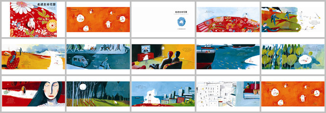 《走进生命花园》绘本故事PPT。孩子坐在他的岛上,一边看着这个世界,一边思考。孩子到了战争。他想,应该画出军人的制服和长枪,应该把长枪画成小鸟栖息的树枝和牧羊人的笛子。孩子看到了饥荒。他想,应该用绳索抓住云朵,让雨水灌溉沙漠,应该挖掘流着水和牛奶的河流。孩子看到了忧伤,他想,应该学习加减乘除,应该学习和别人分享金钱、面包、空气和土地
