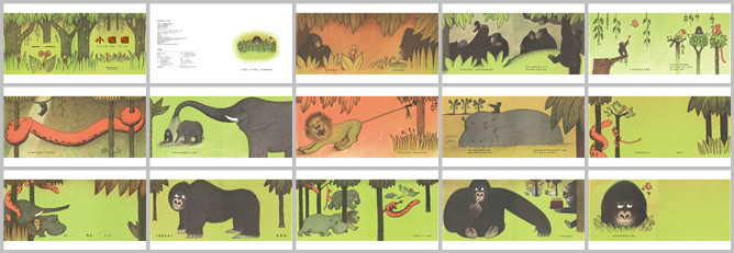 《小猩猩》绘本故事PPT。从前有一只小猩猩,大家都很爱他。他的妈妈爱他。他的爸爸爱他。他的爷爷奶奶,还有叔叔阿姨也爱他。虽然小猩猩才出生一天,大家就都已经爱上了他。飞过树林的粉红色蝴蝶,停在枝头的绿色鹦鹉,还有坐在树上的红色猴子,每个都爱小猩猩。连大蟒蛇都觉得小猩猩很可爱。象妈妈会带着象宝宝来看他。狮子还为了他,发出响亮的吼声。河马奶奶也很疼爱小猩猩