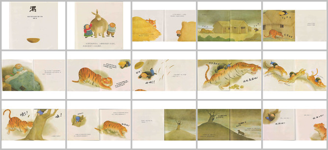《漏》绘本故事PPT。从前有座驴背山,山腰间住着个王老汉,王老汉家养了一头大胖驴。山上的老虎看见了,心里想:那大胖驴一定很好吃。山下的小偷看见了,心里想:那大胖驴一定能卖个好价钱。这天晚上,老虎和小偷都来了。小偷扒开了屋顶,老虎挖开了墙脚。王老汉被惊醒:咦,什么声音?老太婆说:管它贼哩虎哩,我什么都不怕,就怕漏。小偷想:我走南闯北这么多年,从来没碰到过漏,难道这家伙比我还厉害