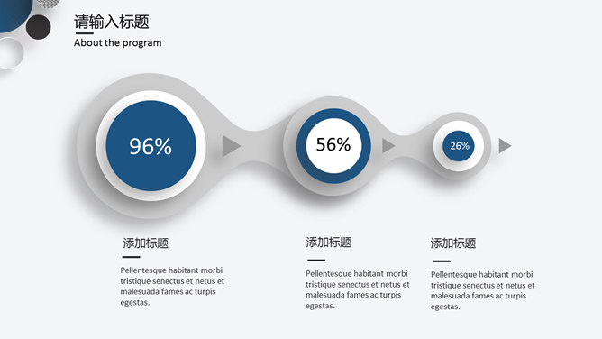泡泡装饰商务通用PPT模板。一套商务通用幻灯片模板,大气蓝色主色调,泡泡装饰,微立体视觉效果。