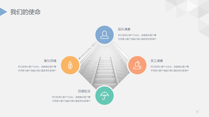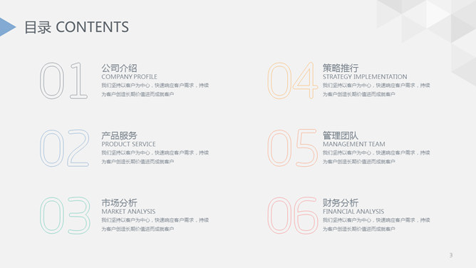 精美实用公司介绍PPT模板。一套设计精美的公司介绍简介幻灯片模板,创意三角形装饰,页面丰富实用。