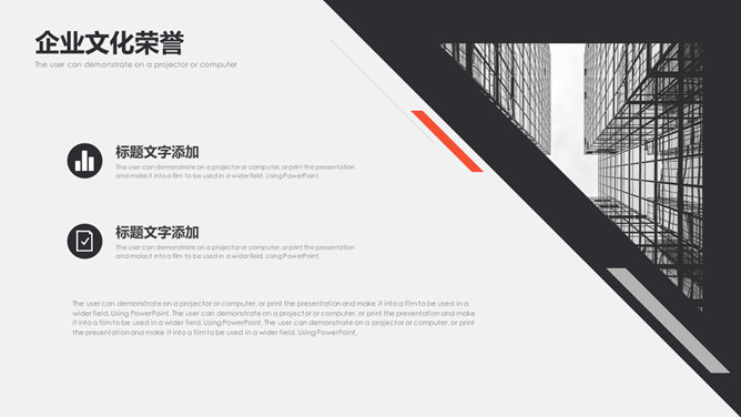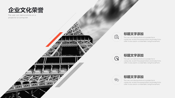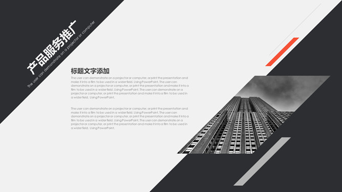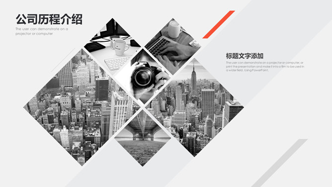 创意画册风公司简介PPT模板。一套精美公司介绍简介幻灯片模板,创意斜向排版,画册设计风格,动态播放。