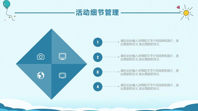 六一儿童节活动策划PPT模板。一套儿童节主题幻灯片模板,可爱卡通设计,适合儿童节活动组织策划汇报。