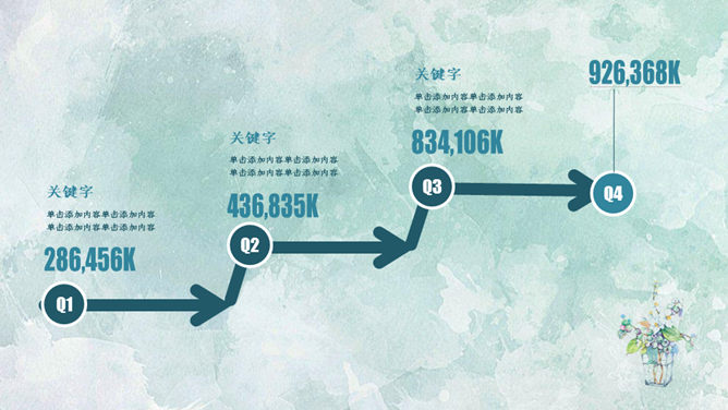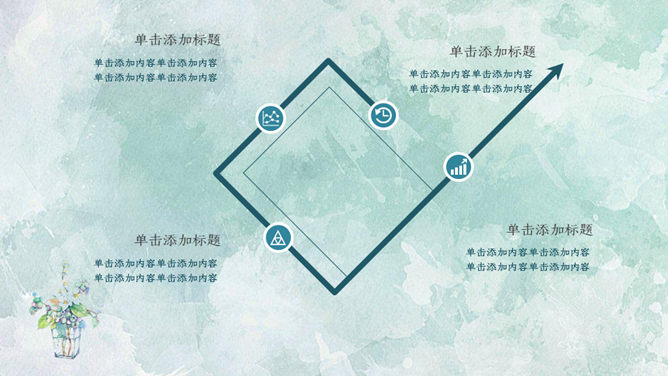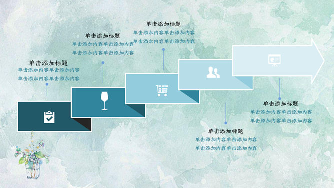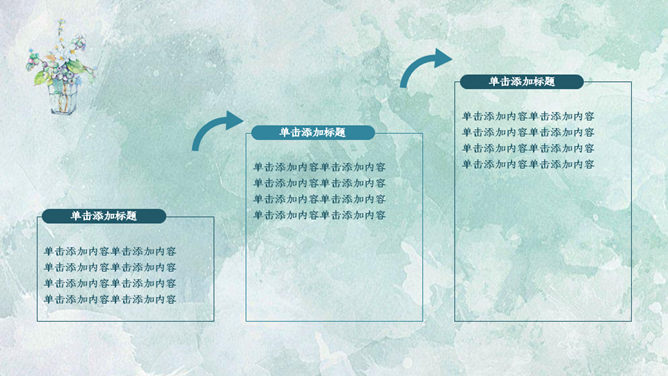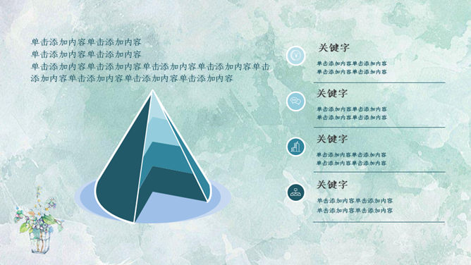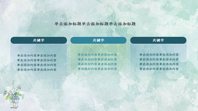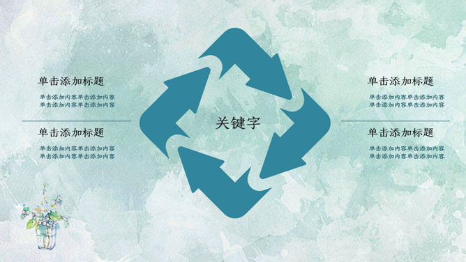 简约夏日清爽薄荷绿PPT模板。一套简约通用幻灯片模板,薄荷绿水彩晕染纹理背景,能胜任多种用途。