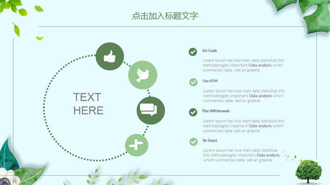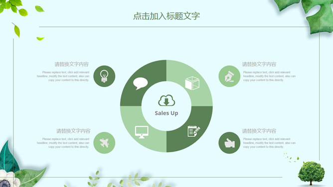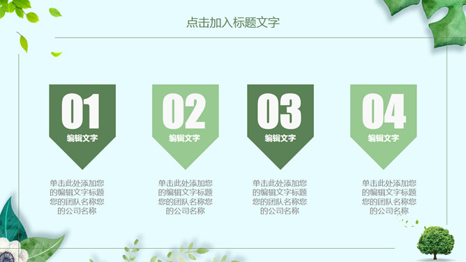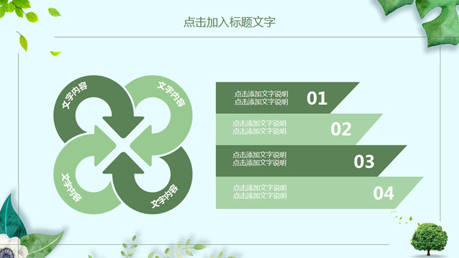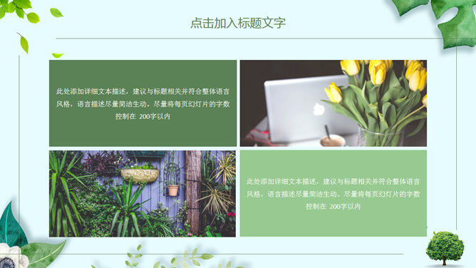 清新绿色植物装饰通用PPT模板。一套精美通用幻灯片模板,清新绿色植物装饰,建议安装字体: