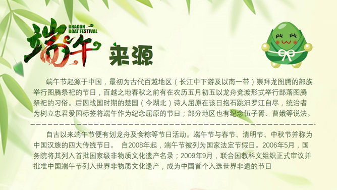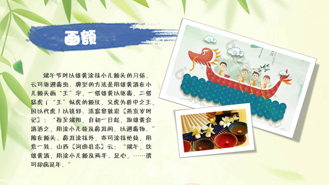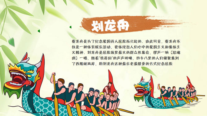 五月初五端午节PPT模板。一套端午节主题幻灯片模板,适合端午节介绍或相关活动。