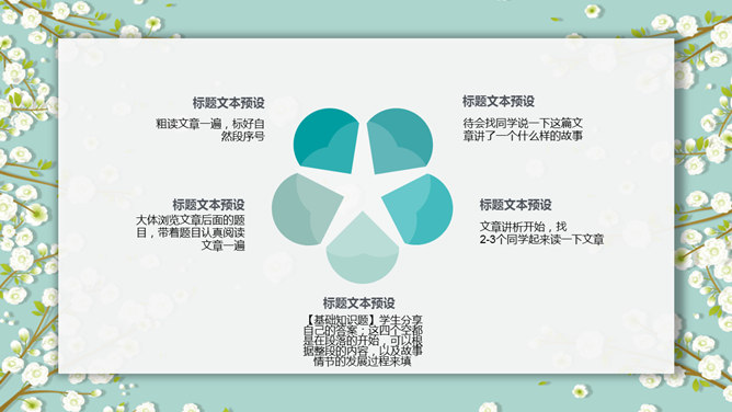 淡雅小清新唯美小花PPT模板。一套淡雅小清新幻灯片模板,唯美白色小花背景,通用性强,适合多种场合。