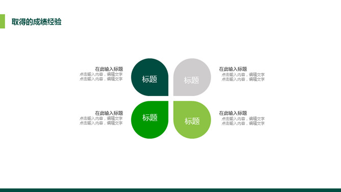 绿色简洁大方工作汇报PPT模板。一套工作总结汇报报告幻灯片模板,清爽绿色主色调,极简设计,动态播放。