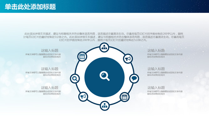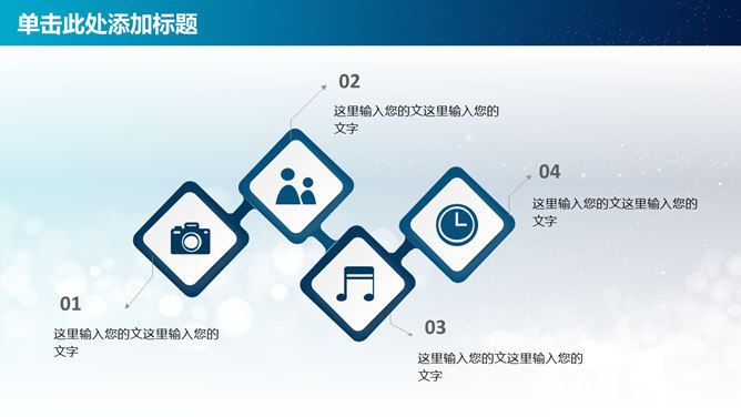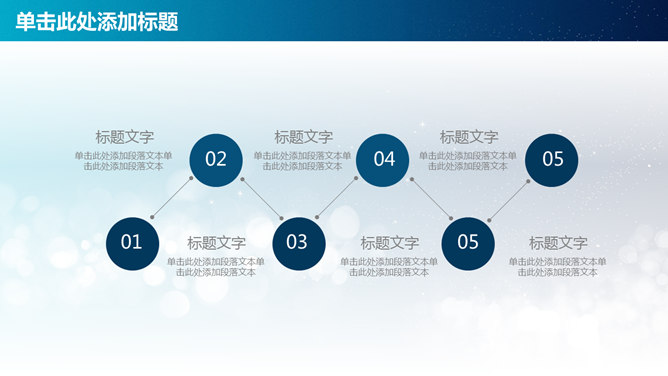 简约通用工作报告PPT模板。一套精美通用工作总结汇报幻灯片模板,蓝色梦幻光影光斑背景,IOS设计风格。