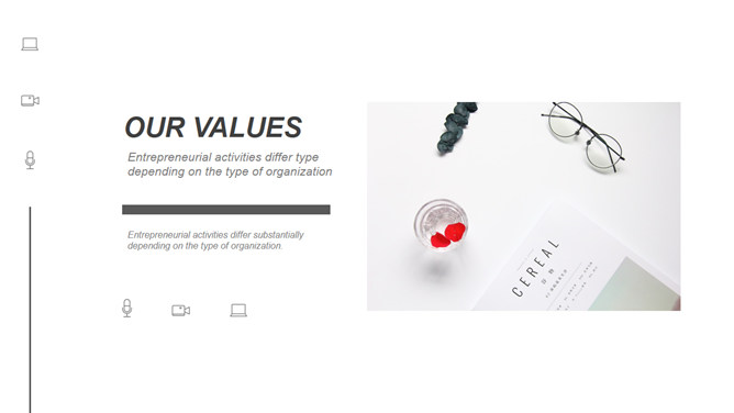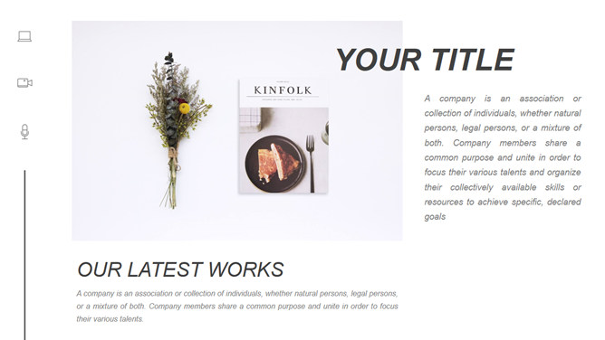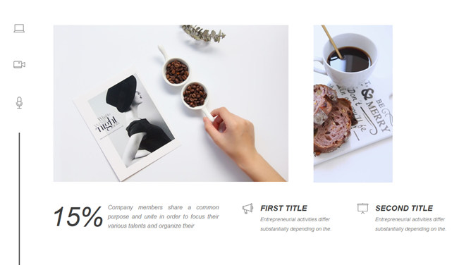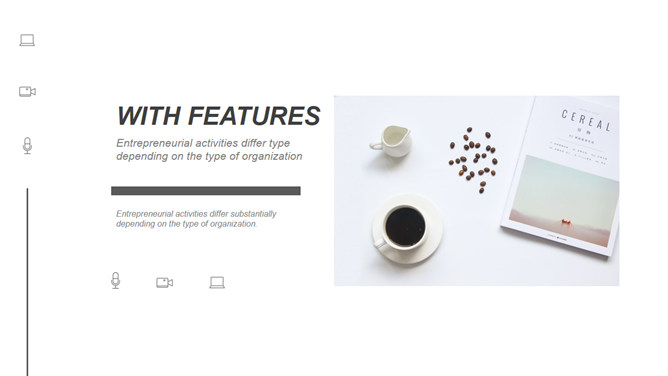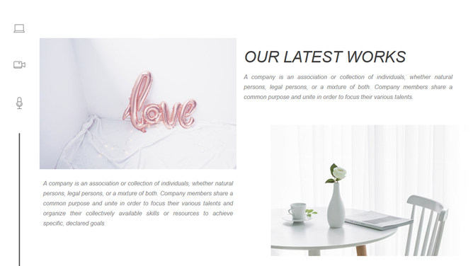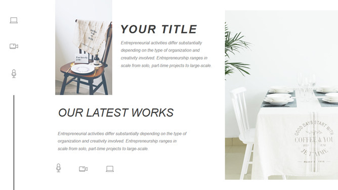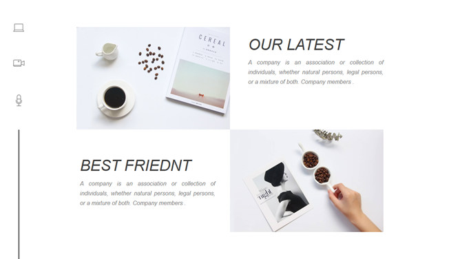 简约精致图文排版PPT模板。一套精美图文排版幻灯片模板,多种布局样式,简约精致,动态播放效果。