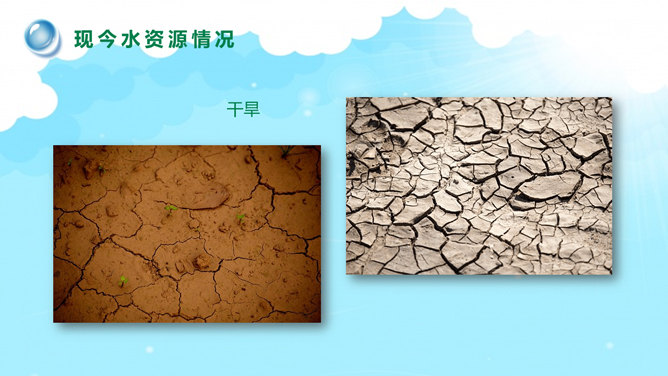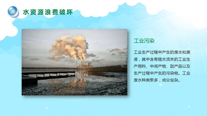 世界水日主题班会PPT模板。一套世界水日主题班会幻灯片模板,包括关于世界节水日、现今水资源情况、水资源浪费破坏、节约用水保护水源等部分。建议安装字体: