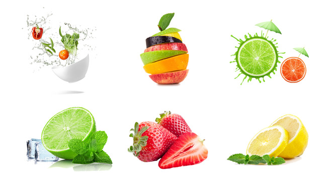 16张清新美味水果切片透明背景PNG图片素材。苹果 青柠檬 橙子 西红柿 薄荷 椰子 草莓 果篮……