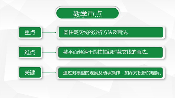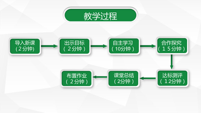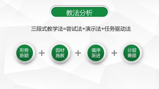 信息化教学设计汇报PPT模板。一套信息化教学设计幻灯片模板,绿色主色调,灰色低面多边形背景,动态播放。