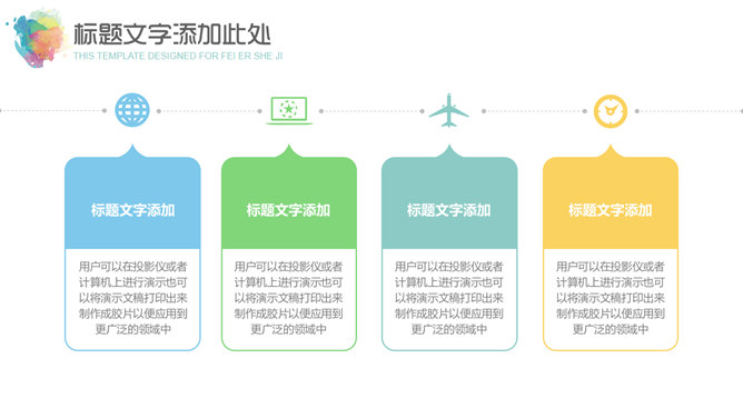 炫彩水彩晕染通用PPT模板。一套炫彩幻灯片模板,多彩水彩晕染效果背景,通用性强,动态播放。