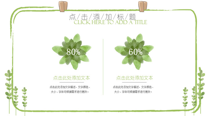 简洁清新绿色盆栽多肉植物PPT模板