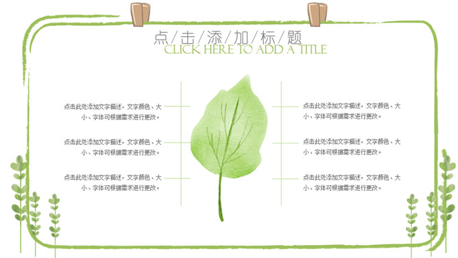 唯美淡雅清新绿色叶子PPT模板
