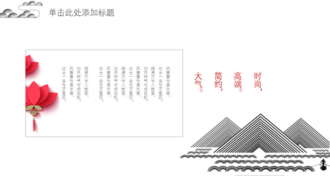 简约现代中式中国风PPT模板。一套创意中国风幻灯片模板,现代中式设计,简约大气,动态播放。