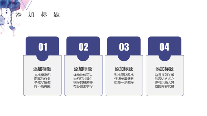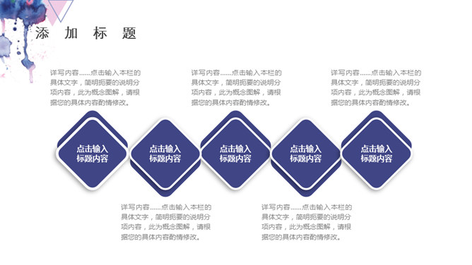 时尚通用水彩晕染墨迹PPT模板。一套时尚通用幻灯片模板,水彩晕染墨迹效果背景,动态播放,多图形图表。