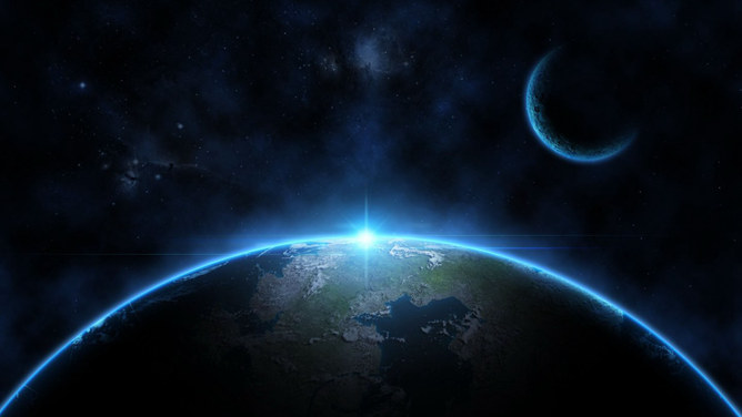 宇宙地球光线PPT背景图片。一组科技科幻风幻灯片背景图片,JPG格式,1920x1080分辨率,高清大图。